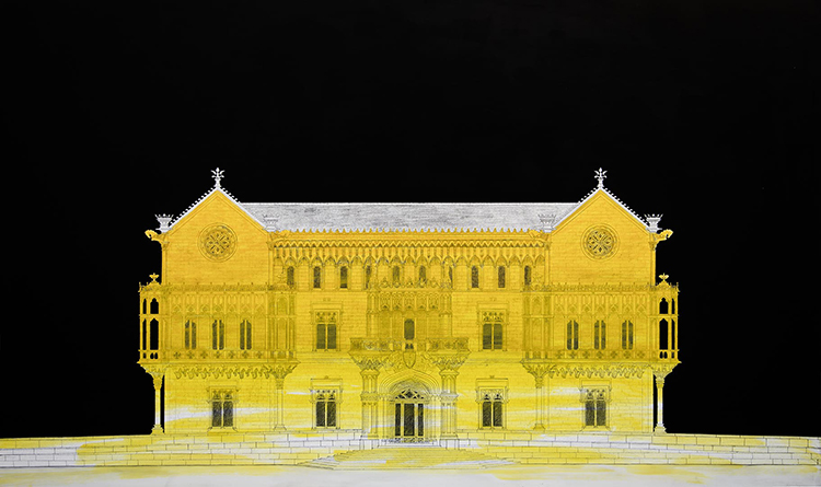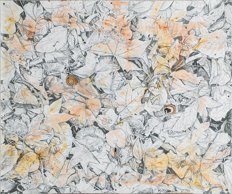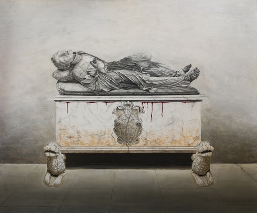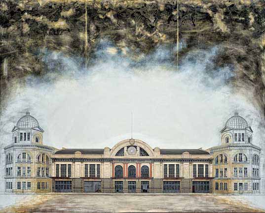 Técnica mixta, grafito y carbón sobre tela. 162 x 195.