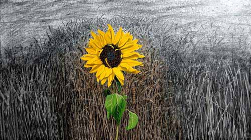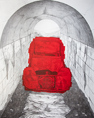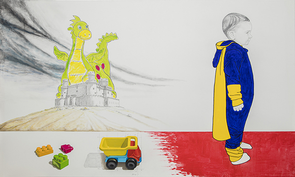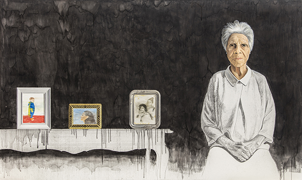 Técnica mixta, grafito y carbón sobre tela. 195 x 162.